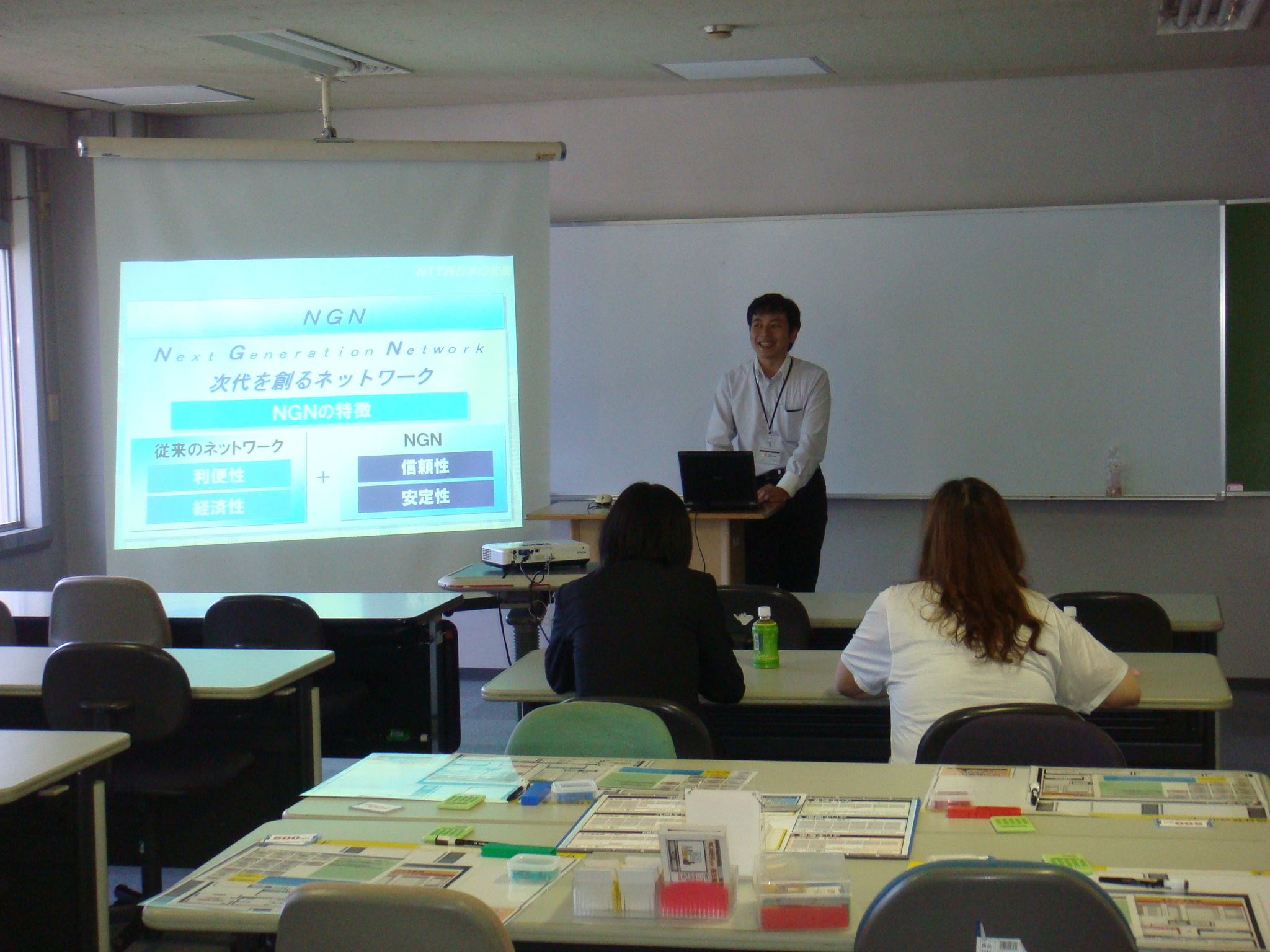 8月4日(木)に西日本電信電話㈱のご協力により、人材スキルアップ随時コースを実施しました。内容は、ブロードバンド営業体験講座としてケーススタディを中心に講義していただき2名の受講者が参加しました。